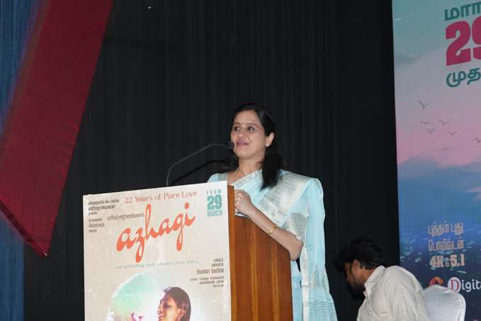 அழகியை ரீ ரிலீஸ் செய்யும் மீனாட்சி சுந்தரம் பேசும்போது, “இதற்கு முன்பு ‘வேட்டையாடு விளையாடு’ படத்தை ரிலீஸ் செய்தேன். 25 நாட்கள் வெற்றிகரமாக ஓடியது. அதன் பிறகு காதலர் தினத்தன்று 96 படத்தையும் ரிலீஸ் செய்தேன் அந்த படத்திற்கு சரியாக தமிழகம் முழுவதும் 96 தியேட்டர்கள் அமைந்தது. அதேபோல இந்த அழகி படமும் இப்போது இருக்கும் இளைஞர்களுக்கு சென்று சேர வேண்டும் என இதன் ரீ ரிலீஸ் பணிகளில் இறங்கினேன். தமிழகத்தில் 50 தியேட்டர்களில் இந்த படம் ரிலீஸ் ஆகிறது. இன்றைய இளைஞர்களுக்கு தங்களது கடந்த காலத்தை நினைவு கூறுவதற்கு ஒரு ஆதாரமாக இந்த படம் இருக்கும் என நம்புகிறேன்” என்று கூறினார்.