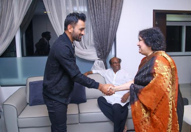 ரஜினிகாந்த் மற்றும் அவரது மனைவி லதாவை படக் குழுவினரோடு சந்தித்துப் பேசினார் .